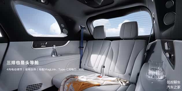 第三排乘客的乘坐舒适性也被照顾到了,第三排座椅支持4向电动调节、配备有座椅加热功能,空间方面也相对充裕,即使是成年男性坐入其中也丝毫不觉得空间局促。