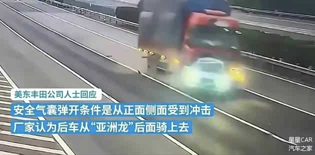 根据现场的视频可以看出,亚洲龙几乎都已经散架了,但是安全气囊依旧未弹出,这个解释过于牵强。