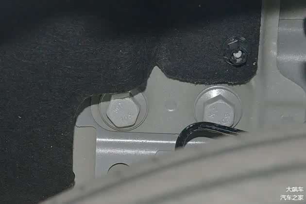 后吸能盒比较短,采用三颗螺栓与后纵梁固定。