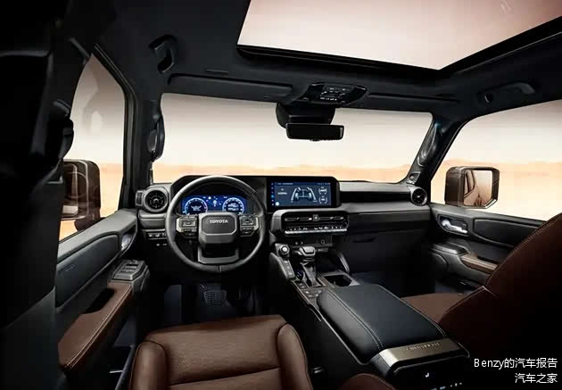 至于车内部分,相较于上一代车型与“古董”没有区别的风格,新一代普拉多的座舱也算是有了质的提升。新车匹配了一块大尺寸的液晶仪表与一块大尺寸的中控屏,用上了圆形的出风口,同时保留了硬派越野A柱扶手的设计,整体的现代化表现还是比较在线的。