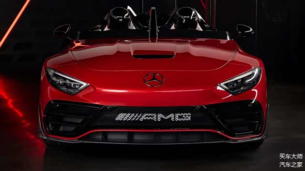车身侧面,新车的线条流畅而富有张力,配合红黑车身配色以及大尺寸“五角星”造型轮圈,运动氛围营造得极其出色。新车还采用了无框车门设计,提升了整体的时尚感。车尾部分,新车配有类似300 SLR的双峰防滚架,并配有AMG徽章彰显出其尊贵的身份。新车采用了贯穿式尾灯组,与前大灯组相呼应,提升了整车的辨识度。新车还配有双边共四出的排气系统,进一步突显了车辆的运动性能。新车还采用了F1上的Halo“人字拖”安全系统,这一设计不仅增加了车辆的安全性,也使得新车在外观上更具战斗气息。同时,新车还大量应用了碳纤维材料进行减重,以提升车辆的操控性和加速性能。