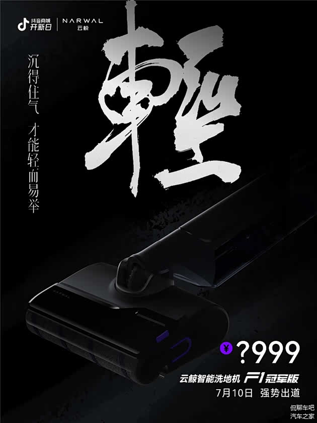 7月5日消息,云鲸官方今日在社交平台发布了云鲸智能洗地机F1的预热视频,宣布该新品将于7月10日正式上线。从预热海报来看,关键词“轻”暗示了云鲸洗地机F1轻巧灵活的产品特点,结合“冠军洗地机”的产品定位,新品或兼具轻巧体验和强悍清洁性能,而海报上?999的价格也给消费者留下了最大悬念。