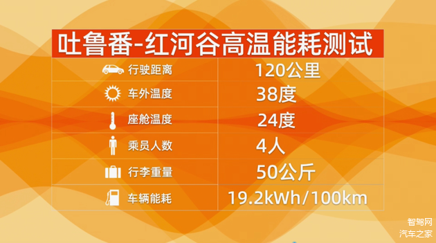 在能耗测试环节,我们选取了吐鲁番到红河谷一段82公里的路段,当时室外温度38度,地表温度超过50度,座舱内一直保持在22-24度上下,空调出风口全程开启大风模式。