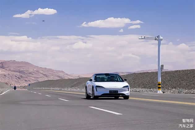 在中汽中心进行专业测评的同时,智驾网的团队也在同一时期驾驶着智界S7,先后从吐鲁番开到哈密,再从哈密开回吐鲁番,总行程往返300多公里,在38度的日常高温天气中(舱外温度多在42-48度之间),先后在城市路况、高速路况、戈壁和大风扬尘场景中体验了智界S7。