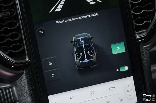 此外,Trail Control 系统(也配备在 Raptor 上)可以帮助驾驶员在越野驾驶时保持恒定速度。如果驾驶员选择设定速度(低于 32 公里/小时),系统将自动管理车辆的加速和制动,使驾驶员能够专注于转向输入。