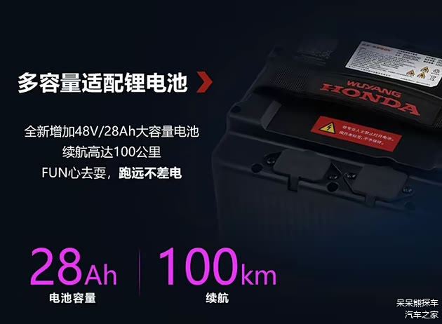 动力性能,五羊本田2024款U-be的3款车型搭载2中电池容量,电机最大功率400瓦。其中,低中配车型搭载48V/24Ah锂电池,高配车型搭载48V/28Ah锂电池,最高车速为25km/h,最大的续航里程为100km,满足了上下班日常通勤的需求。