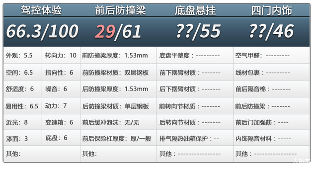 防撞梁部分没有看到更多的升级,那底盘情况如何呢?还请继续关注后续的拆车内容。(本文及视频中的测量数据结论观点仅对此辆车负责,测量数据对公示的实验方法负责。)