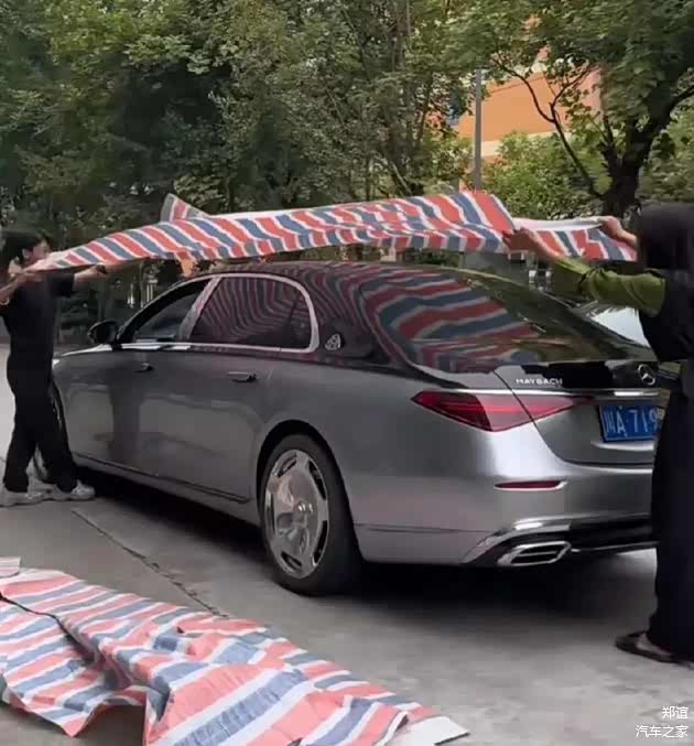 如果事情到此,可能就是一个普通的维权。但是没有想到其它奔驰迈巴赫的车主居然开始争相模仿。在自己的汽车车顶上贴防水布声援车主!这倒是非常新鲜的一件事!