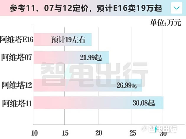 阿维塔12起售价比阿维塔11便宜3.09万,预计E16也将比阿维塔07便宜3万左右,入门版或卖19万。