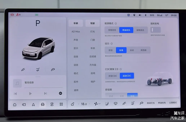 当电量充足时,理想 L6 宛如一位优雅的舞者,在城市舞台上轻盈踱步。其加速响应敏捷,动力输出线性,每一次踏板的轻触都能换来恰到好处的速度提升。而一旦电量降至设定阈值(电量低于20%时,增程器启动并将电量维持在20%左右。当开启强制纯电,电量低于3%时再启动增程器。),增程器将悄然介入,确保旅程无忧续航,无缝衔接的动力转换,让你几乎察觉不到模式的切换。该模式更适合可以安装家用充电桩或者方便充电的情况下使用。