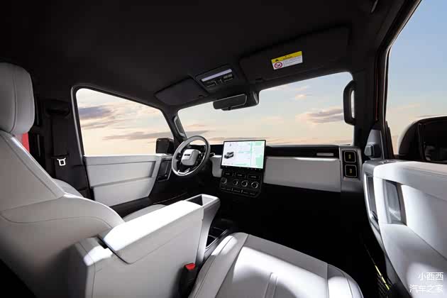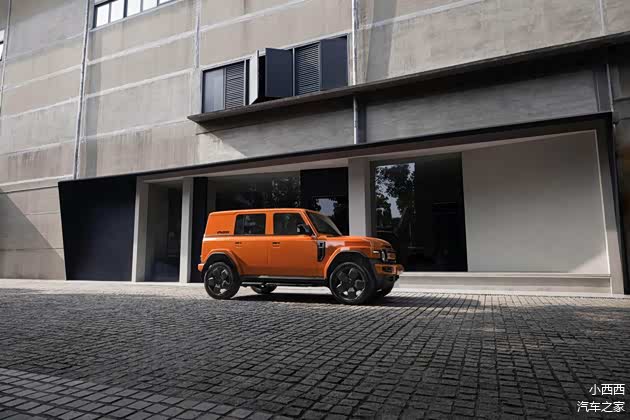 V23造型方正硬朗,车身尺寸长4220mm、宽1915mm、高1845mm,接近1:1的高宽比,配合21吋大轮毂,赋予整车视觉冲击力。圆形大灯、固定式侧踏板、C柱盲窗等经典越野元素,与现代科技外露式四角透明毫米波雷达罩、立体悬浮式“小书包”、乐高模块刹车尾灯等设计相结合,使V23既“复古经典”又“科技赛博”。