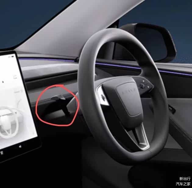 而在细节方面,特斯拉焕新 Model Y 取消了换挡拨杆,采用屏幕换挡。而转向灯拨杆则是被保留了下来。