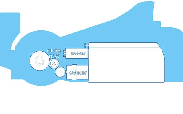通过配备5速变速箱,FE赛车只有最初加速时才会低于峰值功率。在马力曲线上,一旦到达峰值功率右侧的点,车手就可以换挡,电机转速就会下降,马力曲线回到峰值功率的左侧,依此类推,发挥电机的效率,但由于结构复杂,重量增加,如今已被淘汰,更多车队使用2-3档的变速箱。