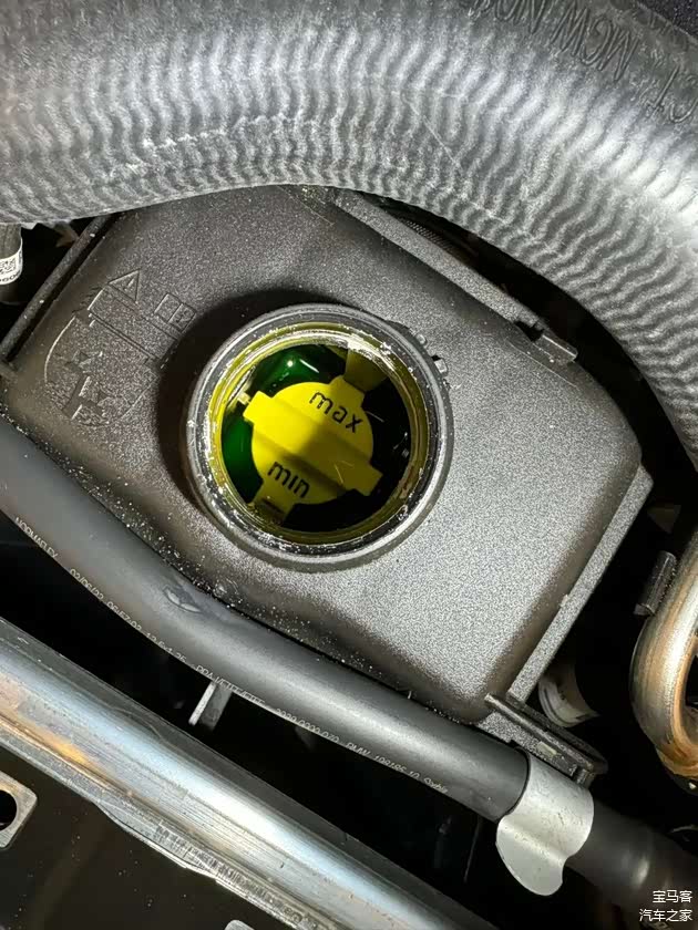 先说说防冻液消耗这件事儿,首次发生是在2024年的春天,有一天早上启动车况检测系统就报警,提示说防冻液缺失,连忙下车查看,发现防冻液已经低于MIN下限值了,赶忙联系宝马道路救援,将车拖到了就近的4S店做检测。
