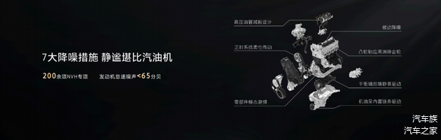 在噪音控制方面,坦克300柴油版有着比肩汽油车甚至新能源的NVH表现。长城技术团队历时5年,对柴油发动机进行200多项NVH专项优化,像正时系统皮带传动、凸轮轴应用消隙齿轮、进气系统集成消声器,一共7大类措施,让柴油发动机的怠速噪声<65分贝,与汽油发动机的噪声水平完全一样,配合整车声学包覆、ANC主动降噪和前风挡前排夹胶玻璃,得到比肩新能源的NVH表现。