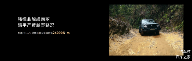 得益于长城汽车24年柴油乘用车研发经验,坦克300柴油版拥有“更劲、更静、更省”三大优势。坦克300柴油版搭载的2.4T全新一代高性能低油耗柴油发动机,专为长途穿越和拖挂需求用户打造,最大净功率135kW,最大净扭矩480N·m,1500rpm即可爆发峰值扭矩。长城汽车技术中心副总经理王超表示,越野要慢,也要慢中有力,坦克300柴油版在2.7km/h时轮端扭矩最高可放大至26000N·m,配合非解耦四驱结构,再复杂的越野场景也能从容应对。
