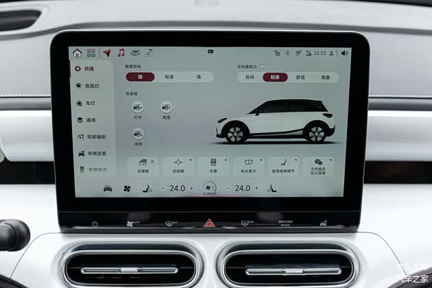smart精灵#1的内饰则主打精致时尚风格,细节处理也比较到位,中控台采用了不规则的设计,搭配独特的空调出风口造型,充满个性,中控台的白色饰板展现出类似于陶瓷的质感,算是一个相对不错的亮点,而车内大量的软性材质和皮质包裹,触感柔软舒适,此外,它的座椅的设计也很有特色,头枕部分的白色饰件点缀,对车内的时尚感的营造,有着不小的作用。