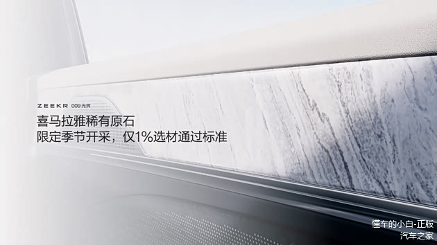 极氪将来自喜马拉雅山脉南麓的天然大理石,作为原厂定制内饰材质,经过纯手工打磨抛光,镶嵌至后排座舱,赋予每一台极氪009光辉,上千万年时间沉淀的独特纹路;让新能源时代最有魅力的前脸更加极致,极氪009光辉的DARK BADGE耀黑前格栅,是全球面积最大的金属前格栅,经由顶级工匠,以一万目的镜面级标准,耗时30小时手工打磨完成。因此,每一辆极氪009光辉,都是时间创造出的,独一无二的杰作。