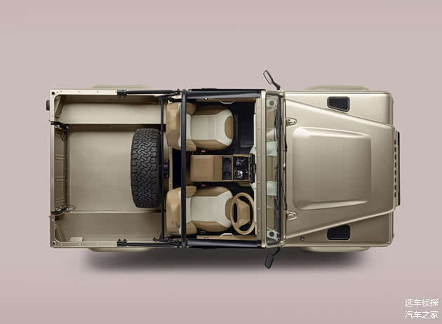 当然这种原厂重新打造的车型,个性定制必不可少,客户可从49种官方漆色中挑选车身颜色,甚至可以定制独一无二的专属色。格栅、门把手、引擎盖铭牌也可个性化搭配,轮毂提供16英寸Wolf款式和18英寸Sawtooth款式。内饰则拥有5种单色和8种双色皮革选项,从卡其棕到自由蓝,再到石榴红,每个人都可以搭出自己喜欢的风格。