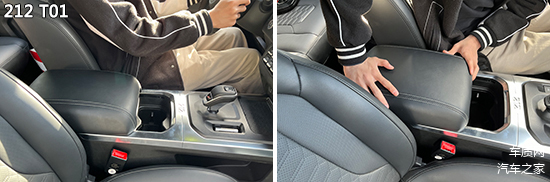 前排中央扶手方面,四款车型均不可上下调节,仅领克Z20支持前后移动。需要注意的是,当驾驶员以标准姿势驾驶时,212 T01的前排中央扶手无法为手肘提供支撑,影响了舒适性。