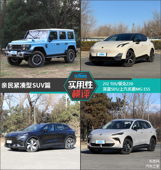 紧凑型SUV凭借适中的车内空间、多功能性以及性价比,成为了众多家庭的理想选择。如今,自主品牌紧凑型SUV有了强大的竞争力,并且价格也更加亲民。在往期的“日常实用性测试”中,我们曾测试过多款亲民紧凑型SUV,此次我们就将212 T01、领克Z20、深蓝S05和上汽名爵MG ES5汇集到一起,通过测试成绩的横向对比,来看看哪款车型日常实用性表现更为全面。