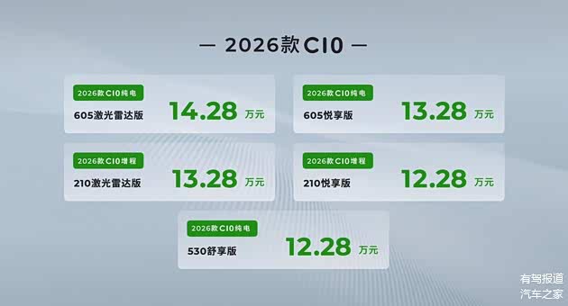 新款零跑C10共带来5款车型,提供纯电和增程版,售价区间12.28-14.28万元。新车基于现款车型进行调整,新增了曦露紫配色,并采用了隐藏式门把手,风格更趋于年轻化。另外,纯电版搭载了74.9kWh电池包,CLTC续航提升至605km。