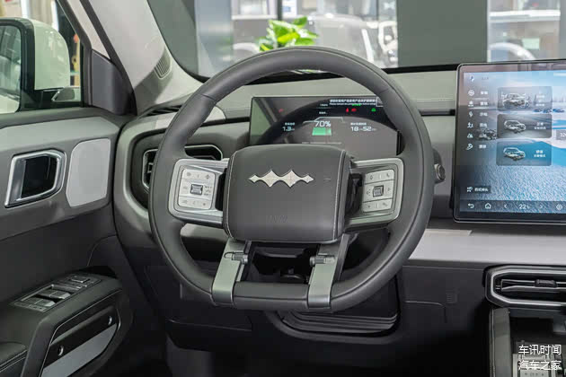 至于其他配置,钛3配备了全景天窗、360度全景影像以及帝瓦雷音响,配置还是比较丰富的。内饰设计的话,钛3采用方程豹经典的四幅式方向盘,中控台中间有一块15.6英寸的悬浮屏,另外还有一块12英寸的抬头显示,能给予驾驶者更直观且便利的驾驶感受。而且在车辆的操控区,配备了很多实体按键,小巧精致,换挡杆的触感也厚实。用料方面显然和豹5有所区别,座椅采用皮革包裹,表面还有打孔工艺。前排座位带有加热、通风以及电动调节等功能,后排座位则配有三个头枕和中央扶手,从而给乘客营造出一种全方位的舒适感。