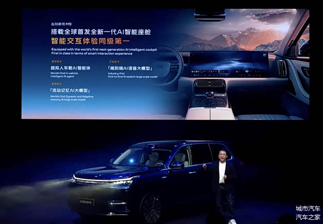 和同行竞品一样,银河M9也采用前后贯穿式灯带设计,同时应用千里浩瀚H5驾驶辅助系统,不过从展车来看,该车并没有使用隐藏式门把手,开关门更高效便捷。座舱部分,因为是正统电车平台的产物,该车二三排地板为纯平设计,二排中间通道180mm,三排靠背支持150度电动调节,外加前排悬浮宽屏、二排吸顶屏幕、以及AI大模型语音系统,科技体验拉满。