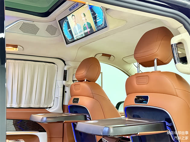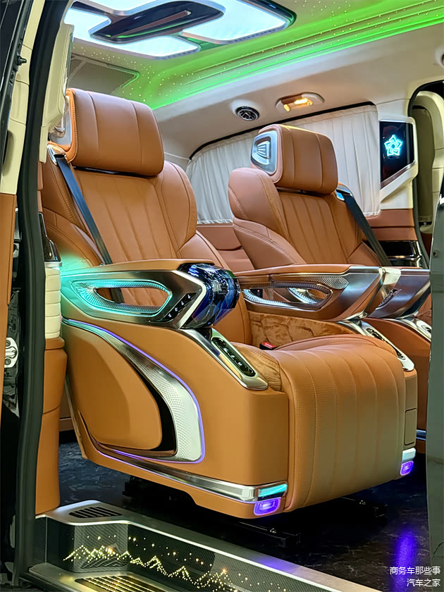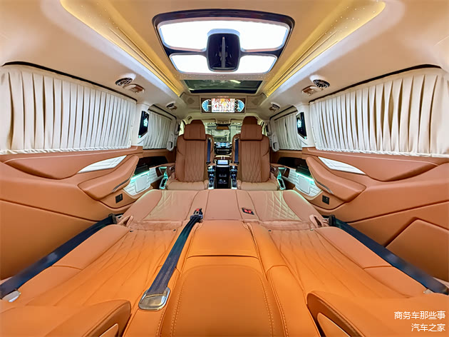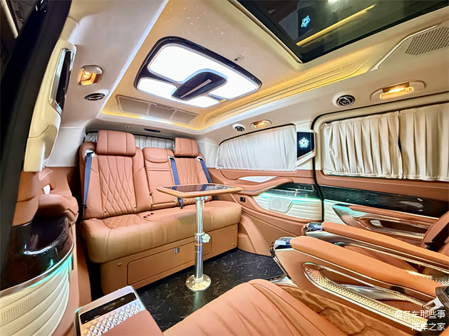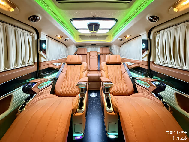 那么同属于改装车而言的话,类似差距不大,这个就看每个厂家所生产的特色和工艺如何了。这台v二六零同样带有,中排豪华航空大座椅通风加热按摩旋转的功能都有具备,同时座椅还带有零重力模式,也是工厂的自定款座椅,带有语音识别控制功能。三联牌的沙发床可以180度的进行平躺,车里面日常的休息睡觉都能够用得上。整体还带有天窗星空顶,多色可调的顶灯,氛围灯,颜值高,看上去就让人很愉快。这样的一款大车型,你不管是公司接待商务使用也好,还是家庭日常出游也好,它都是非常合适的。原先九十多万的价格,现在清库存60出点头,你觉得怎么样呢?欢迎大家在下方点赞评论加关注,我们一起来研究研究。