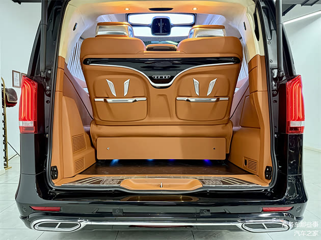 目前就改装商务车而言,福建奔驰授权的厂家有30来家,那这一台车子是属于金冠汽车所出来的一款车子,大厂出品,有品质,有保证,有售后。车子长度在5米4,车宽1米92,车子高度是2米08,7座mpv车型商务车中,它的空间有着绝对大的优势。纯黑色系的外观非常的有个性,海豚式的高顶增加了整体的内部空间,使外观看上去更具有流畅性。前脸用的是他自己家工厂开模具生产的一个星空闪耀的包围,整个大中网非常的具有辨识度,奔驰的大标放在中间,一眼看上去就是豪华商务车不一般的存在。双眼式的大灯,整个中门尾门都是电动的,开启关闭都超方便的。