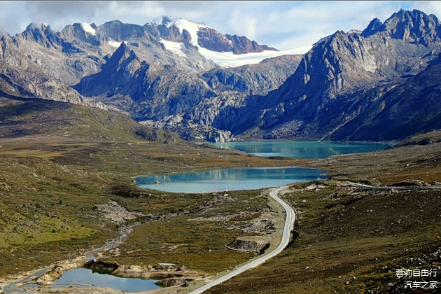 “海子山姐妹湖”是川藏线上一颗耀眼的明珠,位于巴塘和理塘的中间, “姐妹湖”也叫“眼镜湖”,沿着G318国道往西而行,翻过沙鲁里山脉中段的一个垭口,拐个弯就能看到一幅令人窒息的美景:在繁忙国道伸向的远方,两处碧蓝澄澈的的高原湖泊紧紧相依,静静地平躺在海子山上,周围是白雪皑皑的雪峰,她俩犹如两颗璀璨的明珠,又像雪山的两滴眼泪,洒在山脚。还似两个美丽羞涩待嫁的少女,显得是那么圣洁,在一呼一吸之间,散发着让人沉醉的恬美。