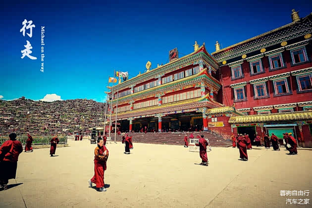 以中心的经堂为界,坡上是喇嘛的领地,坡下则住着觉姆,大殿旁边分布着一些餐厅和商店。有的佛殿会在中午放斋,你可以尝尝寺庙的免费斋饭,也可以去汉族修行者转有的经堂,体验诵经礼佛的感觉。无论你是为了摄影而来还是为了了解藏传佛教而来,在这里都会得到满足,感受到虔诚与震撼。