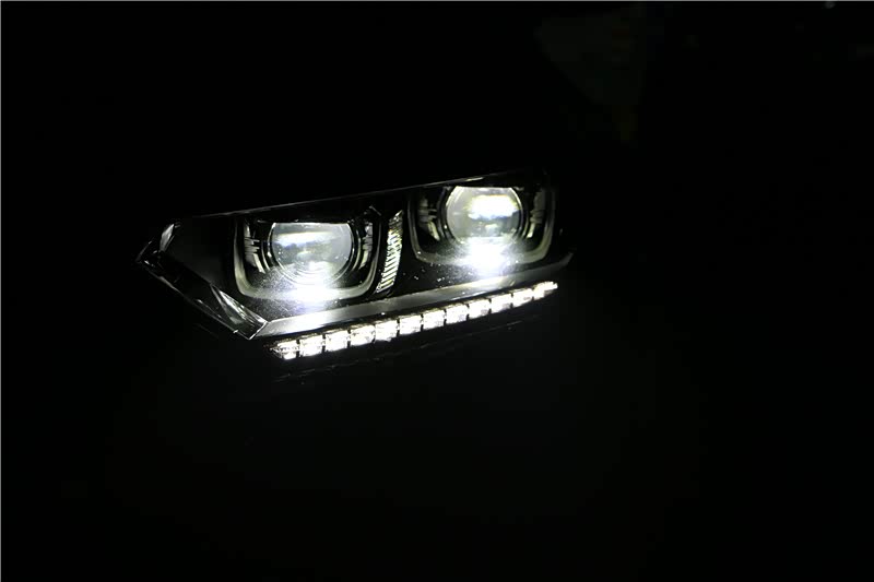 大灯迈腾B8高配车型是LED光源带透镜,低中配车型LED光源无透镜,夜间行车照射效果不聚光,改装两套LED双光透镜,实现四远光四近光。