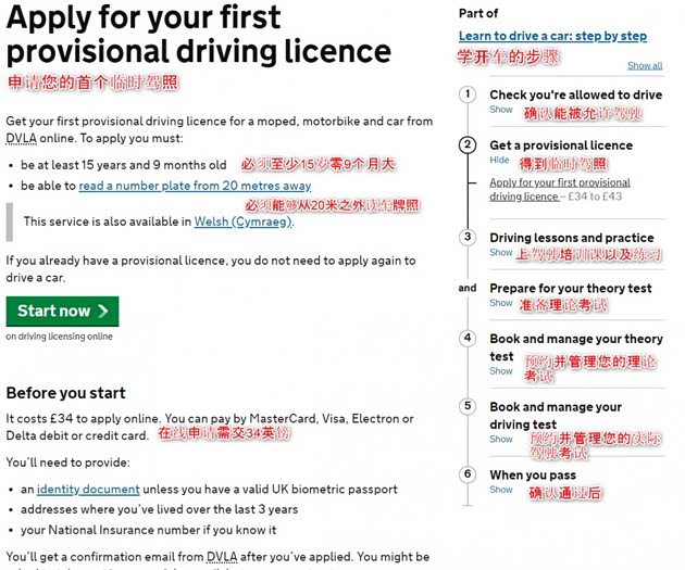 英国的政府网站是我见过的最实用政府网站。当然我平时也很少接触政府网站。在英国考驾照的全部流程都在政府网站上有简洁明了的介绍。只要能看懂英文,都能够很快地找到报名链接。我们来简单看看步骤。