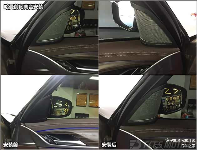 新5系G38车型跟之前的宝马大多数车型一样,原车配置只有6个喇叭,分别为4中2低,没有高音!!听过宝马原车音响的车友都能明显感觉到高音部分严重缺失,整体效果比较沉闷,少了一种我们常说的清晰度,稍微好点的是低音方面,但不够结实,松散、缺少下潜,整个音响系统听起来浑浑的,很压抑,让人较为失望!然而改善原车喇叭音质唯一的方法就是做音响升级,淘汰原车劣质音效~~~老客户宝马530Li车友刚提车就与我们改装客服预约了到店,选装原厂哈曼卡顿全套16件套喇叭,原厂件、全程无损安装、原装位对插、原装位布线,安装完美后技师用宝马原厂电脑编程开通,实现音源保真、音质靓丽清晰有层次感,达到坐在车里如同在音乐厅聆听的效果。