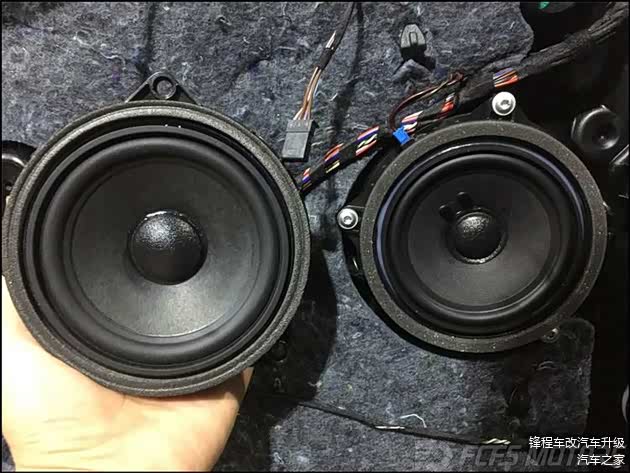 安装好哈曼卡顿中音喇叭后,我们可以拿换下来的原车喇叭与哈曼卡顿喇叭做对比,无论是从外观上还是材质上,哈曼卡顿的喇叭用料与做工都要明显优于原车喇叭。