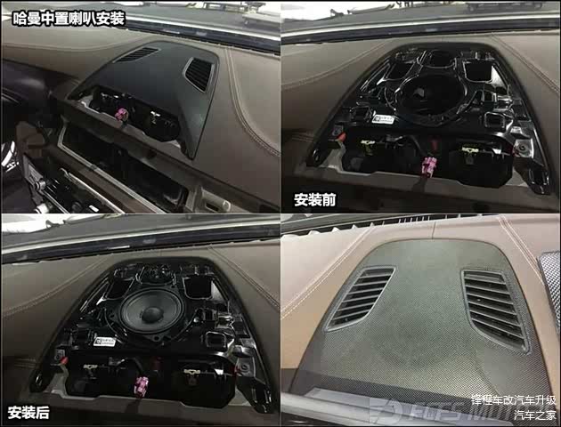 中置是在车内的听音有着很重要的作用,有了中置喇叭的音响系统,声音的平衡感会更好,定位也会更精准。而原车没有中置喇叭但留有中置位置,所以原装位安装哈曼高音跟中音,再加上哈曼中置盖板,完美~