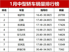 极驾Auto国产车完败!1月中型车销量榜,帕萨特卫冕,雅阁第6名,秦L第13