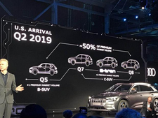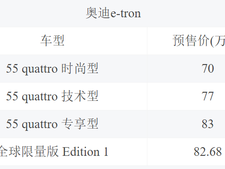 Buycar买车网#上海车展# #2019上海车展# 【奥迪首款量产电动SUV e-tron开启预售,价格70万-82.68万于2020年实现国产】昨日,奥迪首款量产纯电动SUV e-tron开启预售,价格区间为70万-82.68万,新车将于2020年实现国产。 奥迪e-tro
