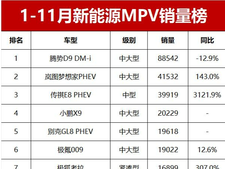 购车网官网1-11月新能源MPV销量揭秘!腾势D9夺冠,岚图梦想家亚军