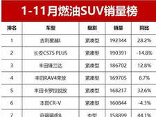 购车网官网1-11月燃油SUV销量榜!星越L夺冠,CR-V排第6,哈弗H6第13名