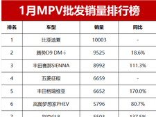 购车网官网1月MPV批发销量榜解读!比亚迪夏上市即夺冠,别克GL8仅第七