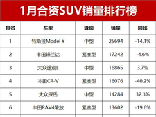 心酸!1月合资SUV销量揭秘,RAV4荣放第六,本田CR-V跌40%