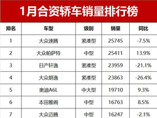 嬉游心酸!1月合资轿车销量榜,朗逸降至第4,卡罗拉仅第12名