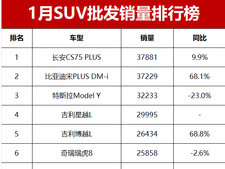 购车网官网1月SUV批发销量榜揭晓!星越L、博越L进前五,瑞虎8排第六
