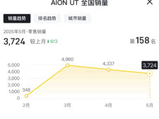 智电体验所5月售3724台,AION UT销量又走低,却不能断言其遇挫?