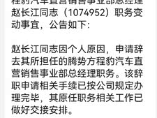 汽车白话下午都在传比亚迪赵长江辞职的事情,现在看起来传言应该成真了