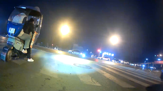 拐弯没有让直行 外卖小哥当场躺平「女司机:他撞的我」