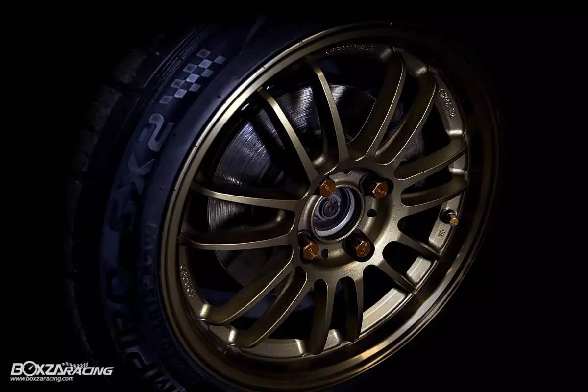 刹车方面也是小有升级,然后搭配古铜的RE30轮圈!