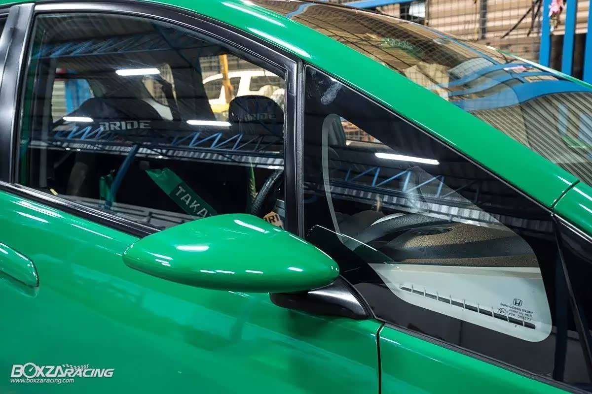 今天的这台GE8外观改装也是简洁为主,最为精彩的就是这部绿色的本田飞度GE8,涂上了稀罕的绿色车身颜色,国内称之“原谅绿”!细看之下,就知道这个是我们后期的飞度版本,不过这个包围还是跟我们国内买到的稍微不一样,居然是没有雾灯版本的!